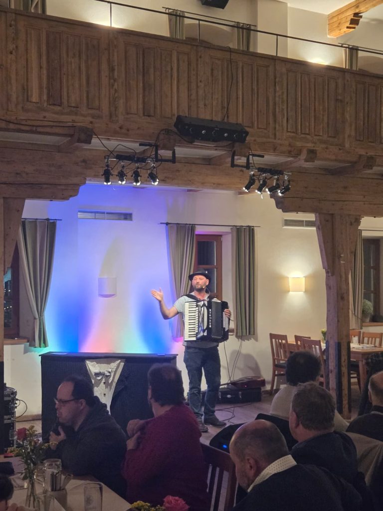 Für beste Unterhaltung sorgte der Gastauftritt von Tom Bauer, der das Publikum von Beginn an auf seiner Seite hatte. Schon sein Einstieg ließ die Gäste schmunzeln: „I hob ma lang Gedanken gmocht – mit wos fang i heid o.“ Ein Feuerwerk wie bei Copperfield sei ihm dann doch zu teuer gewesen – und bei der großen Besucherzahl habe er auch nicht jeden persönlich per Handschlag begrüßen können. Also blieb es bei einem herzlichen „Servus beinand“ – und der Funke sprang sofort über.