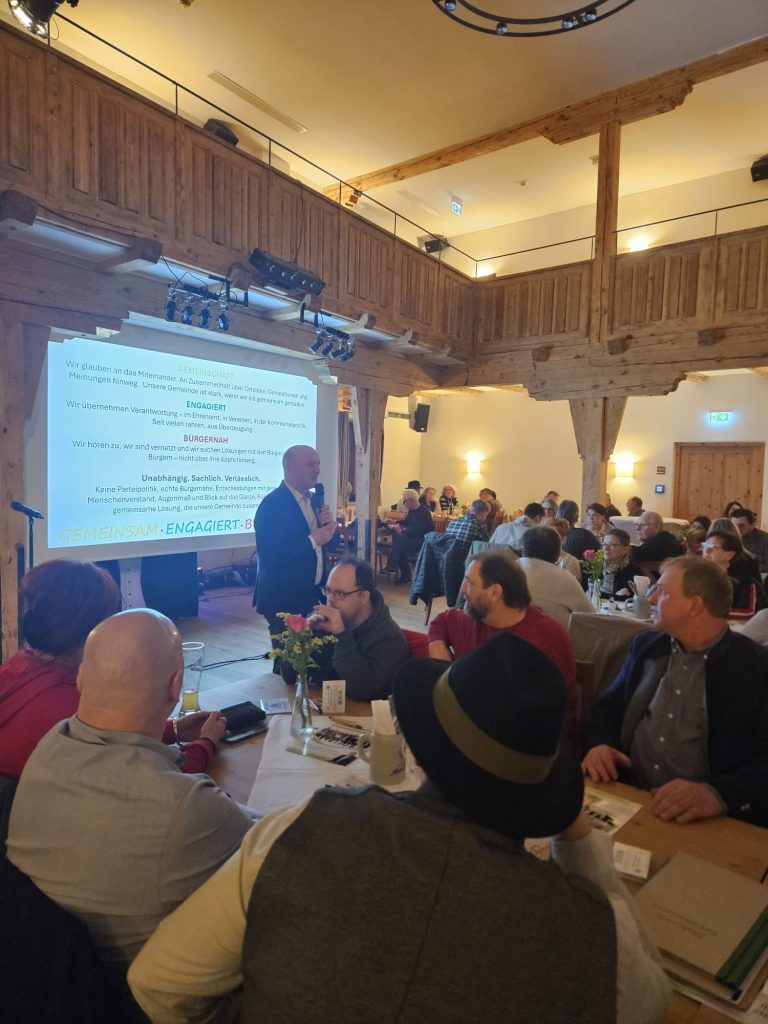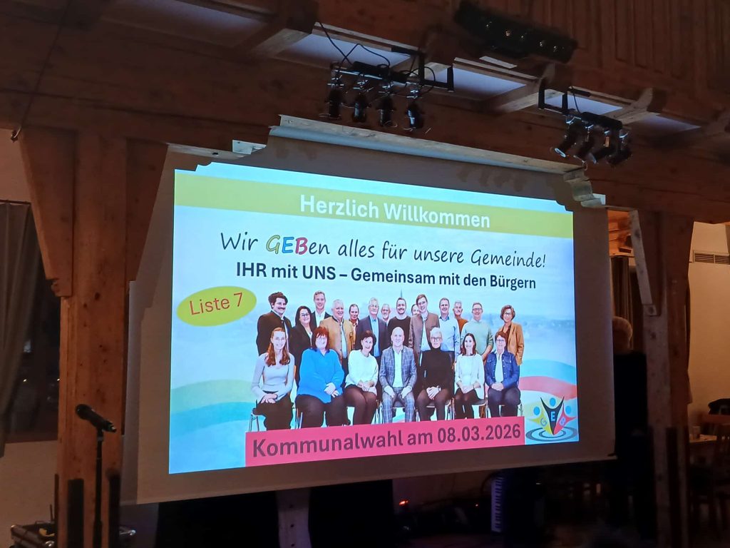 Eingebettet war der Kabarettabend in die GEB-Abschlussveranstaltung, bei der auch die Kandidatinnen und Kandidaten der Gemeinschaft engagierter Bürger nochmals vorgestellt wurden und den persönlichen Austausch mit den Bürgerinnen und Bürgern suchten. In lockerer Atmosphäre wurde diskutiert, gelacht und über die Zukunft unserer Gemeinde gesprochen – offen, bürgernah und auf Augenhöhe.