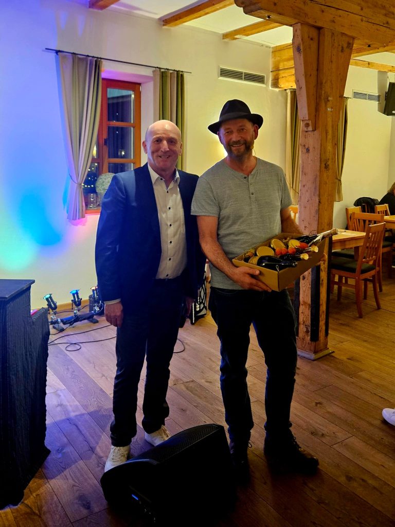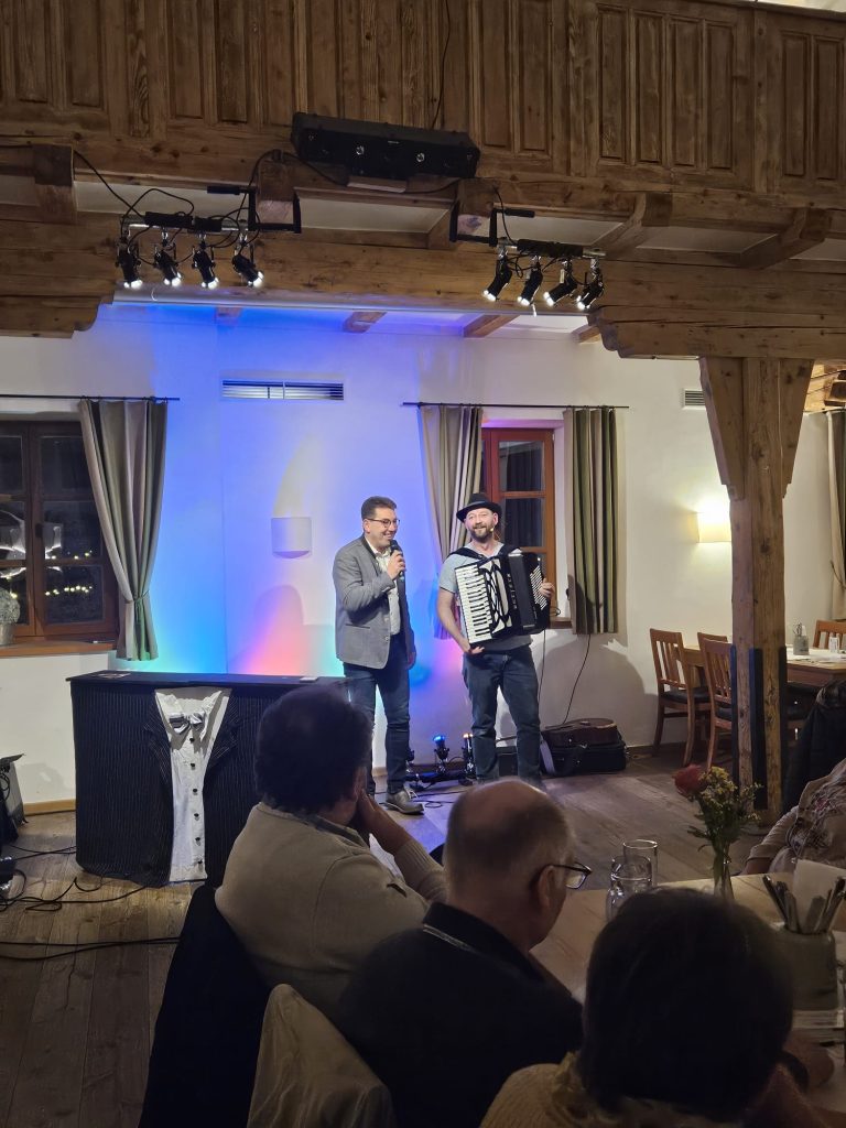 Für einen besonderen Höhepunkt sorgte schließlich ein gemeinsamer Auftritt mit Landratskandidat Werner Straubinger. Zusammen präsentierten sie den Klassiker „1 hoibe Bier, 2 hoibe Bier“ und brachten den Saal noch einmal zum Mitsingen. Bürgermeister Franz Aster bezeichnete das neue Duo augenzwinkernd als „Duo G2 – Gnadenlos“.
